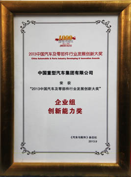 "2013 China Automobile & Parts Industry Developing & Innovation Awards", organized by Automobile & Parts, has recently been unveiled. As a result, China National Heavy Duty Truck Group Co., Ltd. (Sinotruk) won the Innovation Capacity Award.